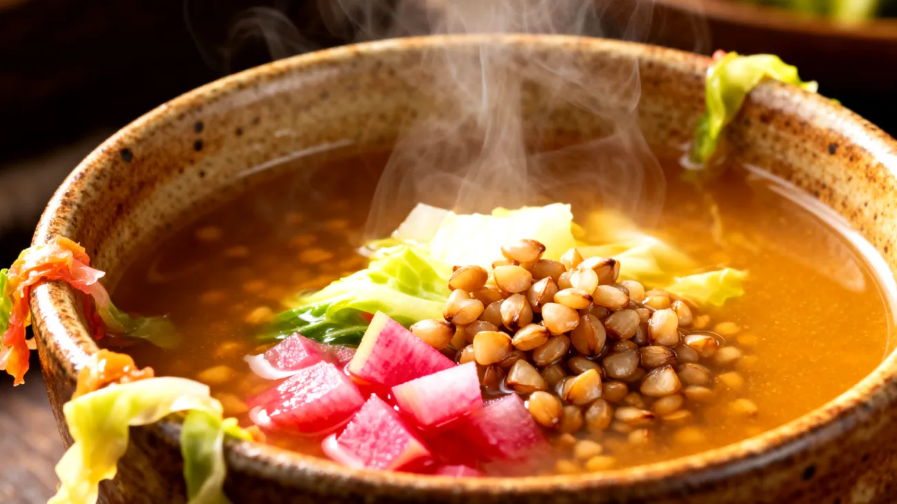 Die japanische Küche hält einen wahren Schatz für alle bereit, die nach intensiven Trainingseinheiten mit Verdauungsbeschwerden kämpfen: die Buchweizen-Miso-Suppe mit fermentiertem Gemüse. Diese nährstoffreiche Kombination vereint jahrhundertealte Fermentationstechniken mit modernen Erkenntnissen der Sporternährung und bietet eine wohltuende Lösung für strapazierte Verdauungssysteme.