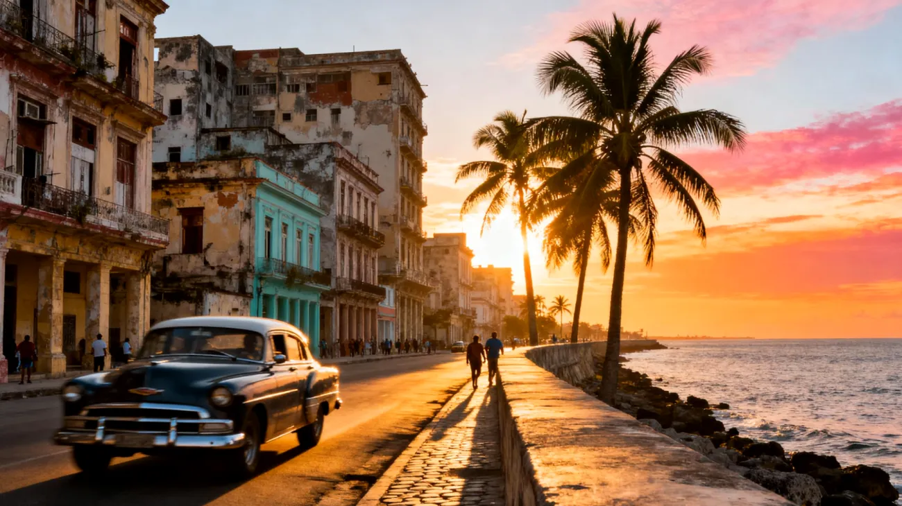 Besonders magisch wird es am späten Nachmittag auf der berühmten Uferpromenade Malecón. Wenn die Sonne über dem Golf von Mexiko untergeht und Paare, Familien und Freunde sich zum täglichen Ritual des Sonnenuntergangs versammeln, entsteht eine Atmosphäre, die romantischer kaum sein könnte.